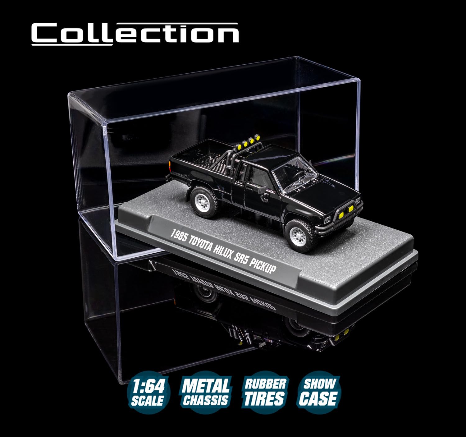 Jada Majorette Collection – 1985 Toyota Hilux SR5 Pickup 1:64 Die-Cast Model Car with Rubber Tires & Display Case, for Collectors & Adults