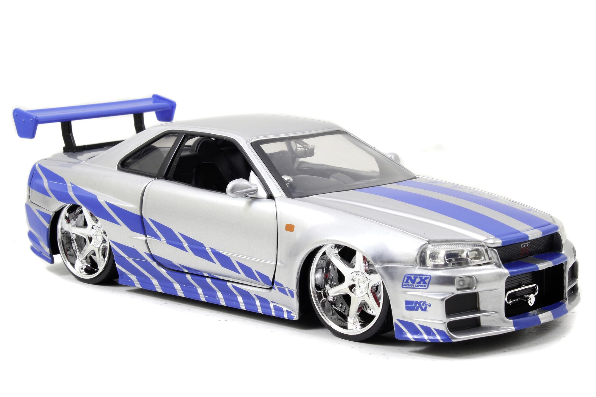 Jada Toys Fast & Furious Brian’s 2002 Nissan Skyline R34 Die-cast Car, 1:24 Scale, Silver & Blue