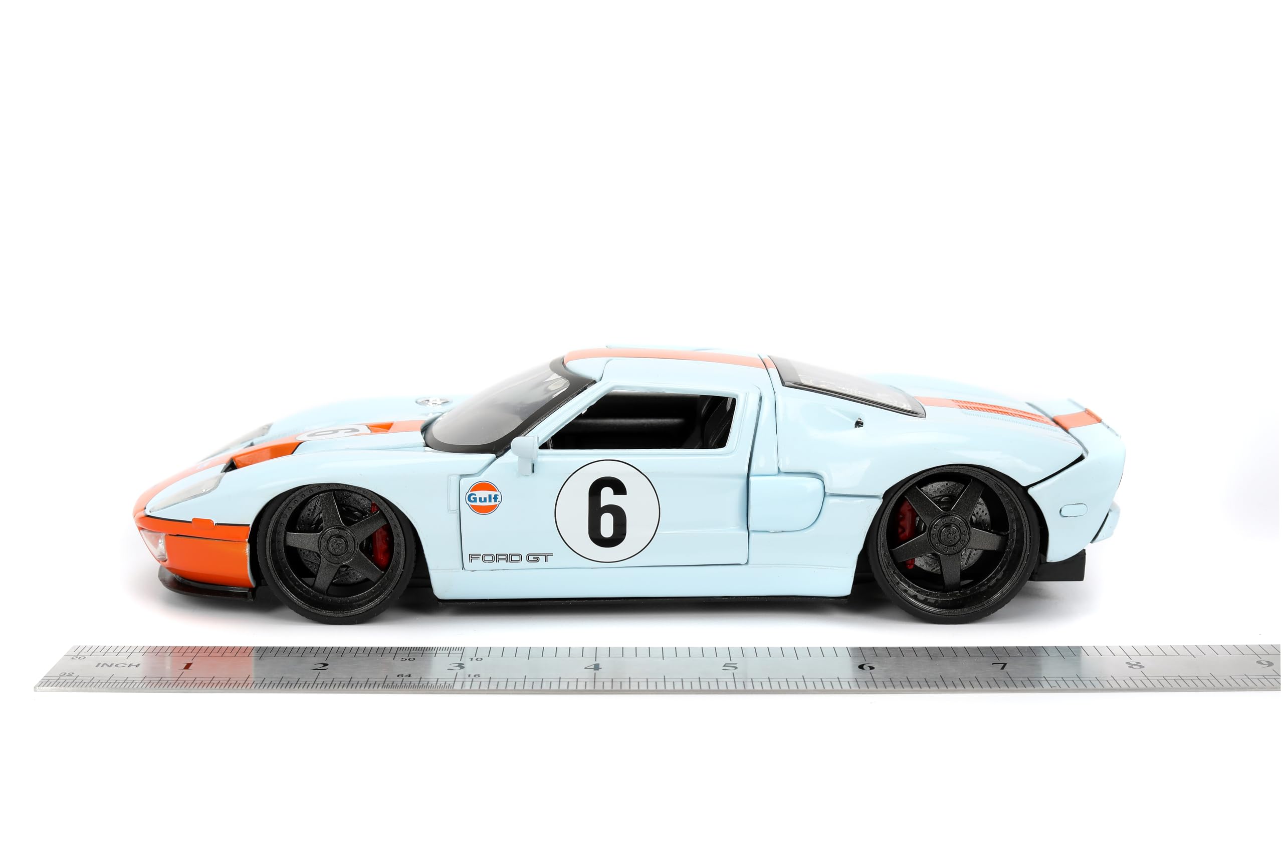 Jada Toys Hyper-Spec 1:24 2005 Ford GT Gulf Die-cast Car – Opening Doors, Hood, Trunk, Rubber Tires(Light Blue)